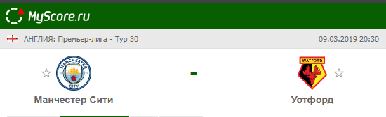 Манчестер Сити (Манчестер) vs Уотфорд (Уотфорд), который состоится 09.03.2019 в 20:30 по МСК.