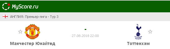 Манчестер Юнайтед (Манчестер) vs Тоттенхэм (Лондон), который состоится 27.08.2018 в 22:00 по МСК