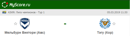 Мельбурн Виктори (Австралия) vs Тэгу (Республика Корея), который состоится 05.03.2019 в 11:30 по МСК.