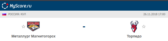 Металлург (Магнитогорск) vs Торпедо (Нижний Новгород), который состоится 26.11.2018 в 17:00 по МСК.