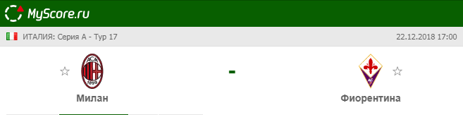 Милан (Милан) vs Фиорентина (Флоренция), который состоится 22.12.2018 в 17:00 по МСК.