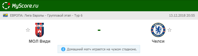 МОЛ Види (Венгнрия) vs Челси (Англия), который состоится 13.12.2018 в 20:55 по МСК.
