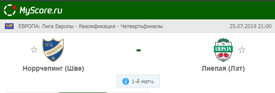 Норрчёпинг (Швеция) vs Лиепая (Латвия), который состоится 25.07.2019 в 21:00 по МСК.