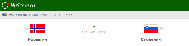 Сборная Норвегия vs Сборная Словения, который состоится 13.10.2018 в 19:00 по МСК.