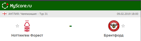 Ноттингем Форест (Ноттингем) vs Брентфорд (Брентфорд), который состоится 09.02.2019 в 18:00 по МСК.