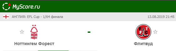 Форест (Ноттингем) vs Флитвуд Таун (Флитвуд), который состоится 13.08.2019 в 21:45 по МСК.