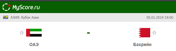 Сборная ОАЭ vs Сборная Бахрейна, который состоится 05.01.2019 в 19:00 по МСК.