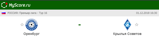 Оренбург (Оренбург) vs Крылья Советов (Самара), который состоится 01.12.2018 в 16:30 по МСК.