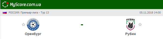 Оренбург (Оренбург) vs Рубин (Казань), который состоится 05.11.2018 в 14:00 по МСК.