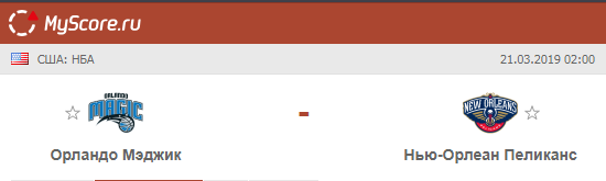 Мэджик (Орландо) vs Пеликанс (Новый Орлеан), который состоится 21.03.2019 в 02:00 по МСК.