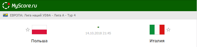 Сборная Польши vs Сборная Италии, который состоится 14.10.2018 в 21:45 по МСК.