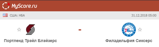 Трэйл Блэйзерс (Портленд) vs Севенти Сиксерс (Филадельфия), который состоится 31.12.2018 в 05:00 по МСК.