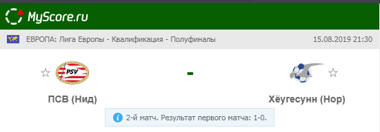 ПСВ (Нидерланды) vs Хёугесунн (Норвегия), который состоится 15.08.2019 в 21:30 по МСК.