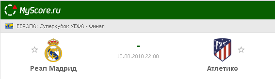 Реал Мадрид (Испания) vs Атлетико (Испания), который состоится 15.08.2018 в 22:00 по МСК.
