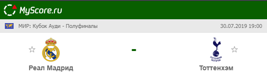 Реал Мадрид (Испания) vs Тоттенхэм Хотспур (Англия), который состоится 30.07.2019 в 19:00 по МСК.