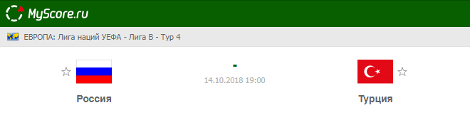 Сборная России vs Сборная Турции, который состоится 14.10.2018 в 19:00 по МСК.