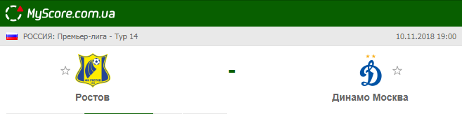 Ростов (Ростов-на-Дону) vs Динамо (Москва), который состоится 10.11.2018 в 19:00 по МСК.