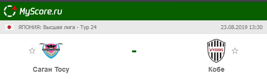 Саган (Тосу) vs Виссел (Кобе), который состоится 23.08.2019 в 13:30 по МСК.
