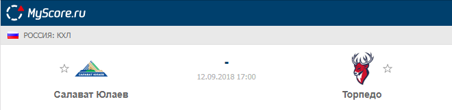 Салават Юлаев (Уфа) vs Торпедо (Нижний Новгород), который состоится 12.09.2018 в 17:00 по МСК.