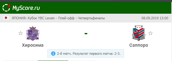 Санфречче (Хиросима) vs Консадоле (Саппоро), который состоится 08.09.2019 в 13:00 по МСК.