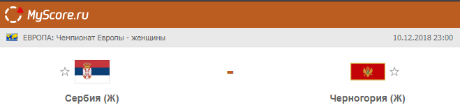 Сборная Сербия vs Сборная Черногория, который состоится 10.12.2018 в 23:00 по МСК.
