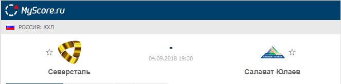 Северсталь (Череповец) vs Салават Юлаев (Уфа), который состоится 04.09.2018 в 17:00 по МСК.