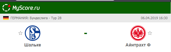 Шальке (Гельзенкирхен) vs Айнтрахт (Франкфурт), который состоится 06.04.2019 в 16:30 по МСК.