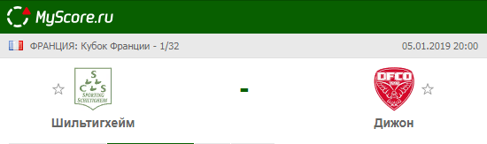 Шильтигхейм (Шильтигхейм) vs Дижон (Дижон), который состоится 05.01.2019 в 20:00 по МСК.