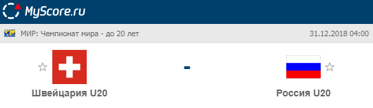 Сборная Швейцарии vs Сборная России, который состоится 31.12.2018 в 04:00 по МСК.