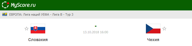 Сборная Словакии vs Сборная Чехии, который состоится 13.10.2018 в 16:00 по МСК.