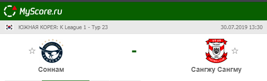 Соннам (Соннам) vs Санму (Санджу), который состоится 30.07.2019 в 13:30 по МСК.