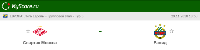 Спартак Москва (Россия) vs Рапид (Австрия), который состоится 29.11.2018 в 18:50 по МСК.