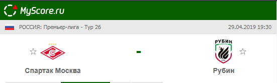 Спартак (Москва) vs Рубин (Казань), который состоится 29.04.2019 в 19:30 по МСК.
