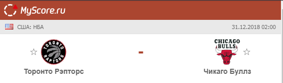 Рэпторс (Торонто) vs Буллз (Чикаго), который состоится 31.12.2018 в 02:00 по МСК.