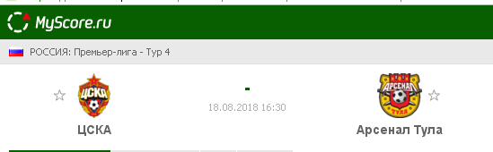 ЦСКА (Москва) vs Арсенал (Тула), который состоится 18.08.2018 в 16:30 по МСК.