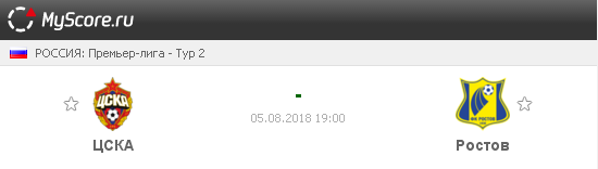 ЦСКА (Москва) vs Ростов (Ростов), который состоится 05.08.2018 в 19:00 по МСК.