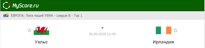 Сборная Уэльса vs Сборная Ирландии, который состоится 06.09.2018 в 21:45 по МСК.