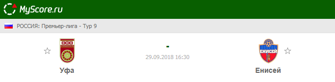 Уфа (Уфа) vs Енисей (Красноярск), который состоится 29.09.2018 в 16:30 по МСК.