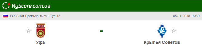Уфа (Уфа) vs Крылья Советов (Самара), который состоится 05.11.2018 в 16:30 по МСК.