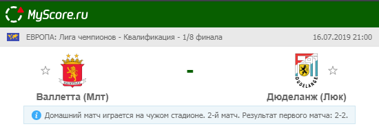 Валлетта (Мальта) vs Дюделанж (Люксембург), который состоится 16.07.2019 в 21:00 по МСК.