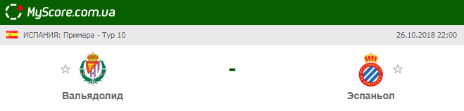 Вальядолид (Вальядолид) vs Эспаньол (Барселона), который состоится 26.10.2018 в 22:00 по МСК.