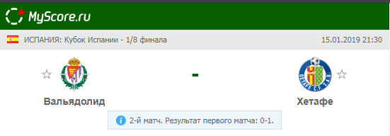 Вальядолид (Вальядолид) vs Хетафе (Хетафе), который состоится 15.01.2019 в 21:30 по МСК.