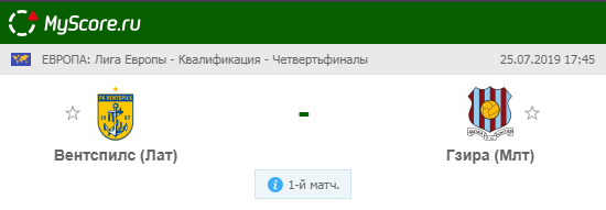 Вентспилс (Латвия) vs Гзира Юнайтед (Мальта), который состоится 25.07.2019 в 17:45 по МСК.