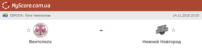 Вентспилс (Латвия) vs Нижний Новгород (Россия), который состоится 14.11.2018 в 20:00 по МСК.