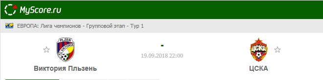 Виктория Пльзень (Чехия) vs ЦСКА (Россия), который состоится 19.09.2018 в 22:00 по МСК.