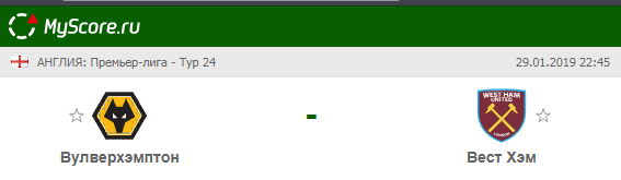 Вулверхэмптон (Вулверхэмптон) vs Вест Хэм Юнайтед (Лондон), который состоится 29.01.2019 в 22:45 по МСК.
