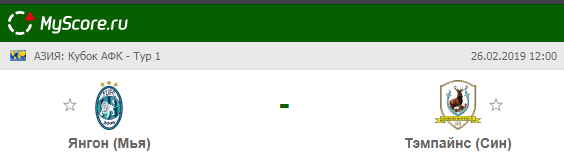 Янгон (Мьянма) vs Тэмпайнс (Сингапур), который состоится 26.02.2019 в 12:00 по МСК.