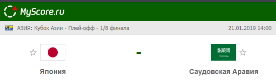 Сборная Японии vs Сборная Саудовской Аравии, который состоится 21.01.2019 в 14:00 по МСК.