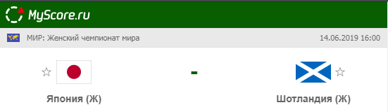 Сборная Японии vs Сборная Шотландии, который состоится 14.06.2019 в 16:00 по МСК.