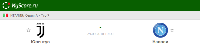 Ювентус (Турин) vs Наполи (Неаполь), который состоится 29.09.2018 в 16:30 по МСК.